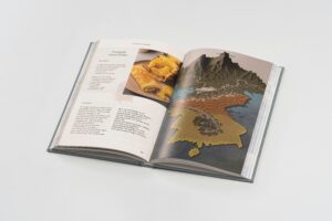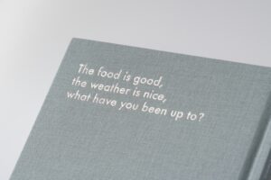 一本德國與台灣兩地藝術家互通的交換日記,收錄了創作者之間去中心化的交流與共創,種種的訊息來往,用布面表現私我的觸感、日記式的手寫封面,雲朵表示出開闊與歡迎,集中在一起成為整片完整的天空,屬於彼此卻又各自獨立,內頁排版與藝術家共創,三個俱樂部,三種不同的版式,透過書信、煮食、觀測天氣,與實際工作的互動,設計意圖符合每位藝術家性格、並能保有整體性,因此統一標頭與頁碼,並設定網格將文字的變動提供彈性,將每個藝術家的文字量與圖片狀態依據適合的方式擺入。