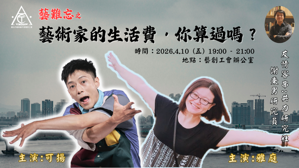 - 2026.04.10(五)雅庭可揚「藝」難忘:藝術家的生活費,你算過嗎?feat.共力研究社
