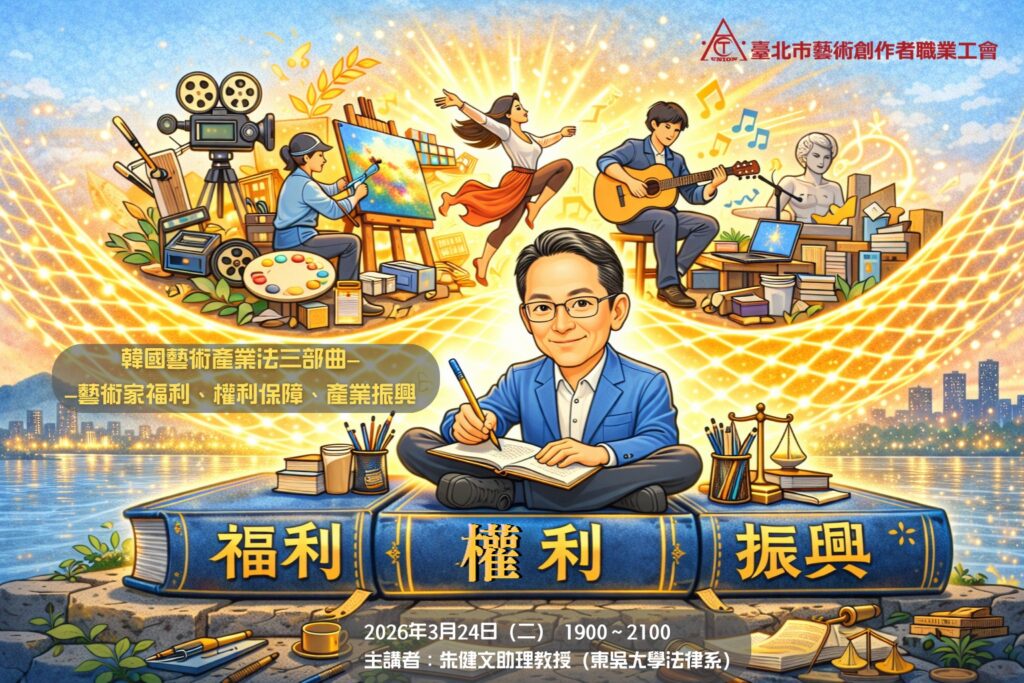 - 2026.03.24(二)韓國藝術產業法三部曲—藝術家福利、權利保障、產業振興(朱健文老師主講)