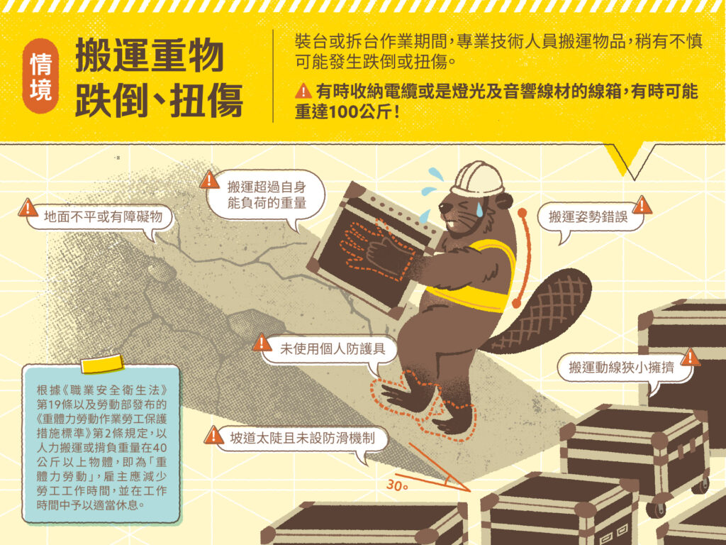 ● 《職業安全衛生法》第19條 ● 《重體力勞動作業勞工保護措施標準》第2條